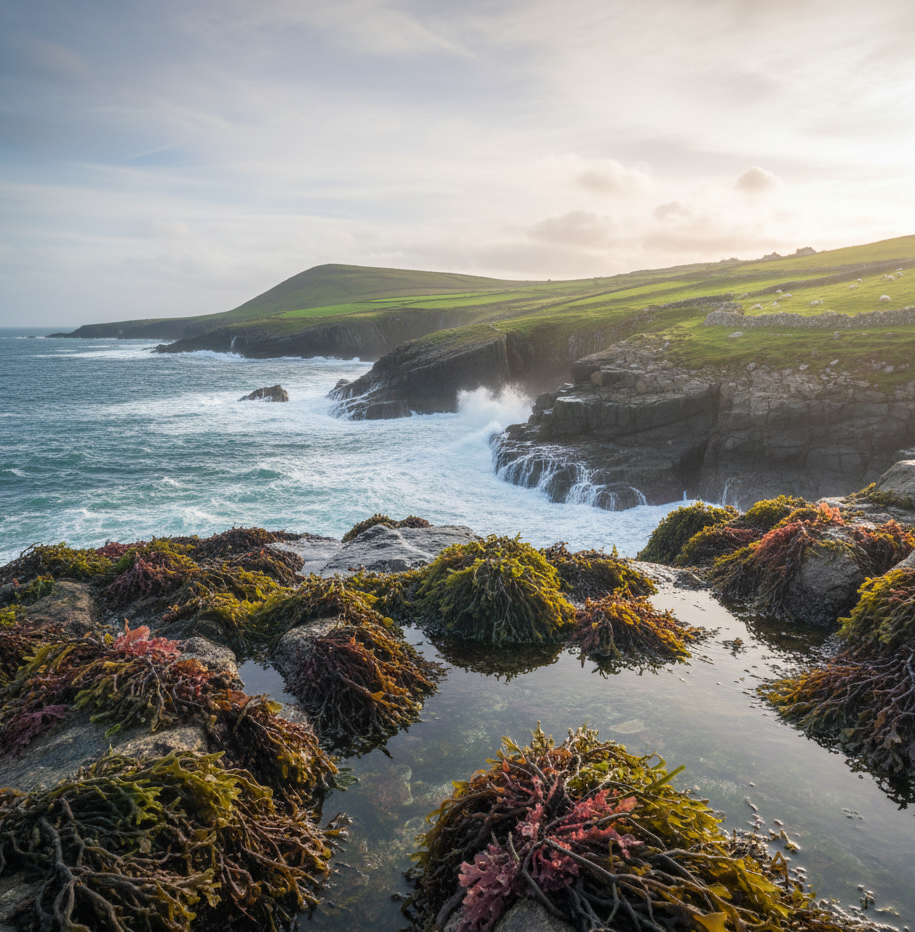 Wir ernten unser Irisches Sea Moss aus den unberührten, kalten Gewässern des Nordatlantiks. Unser Anspruch ist Reinheit, Wirksamkeit und schonende Verarbeitung.